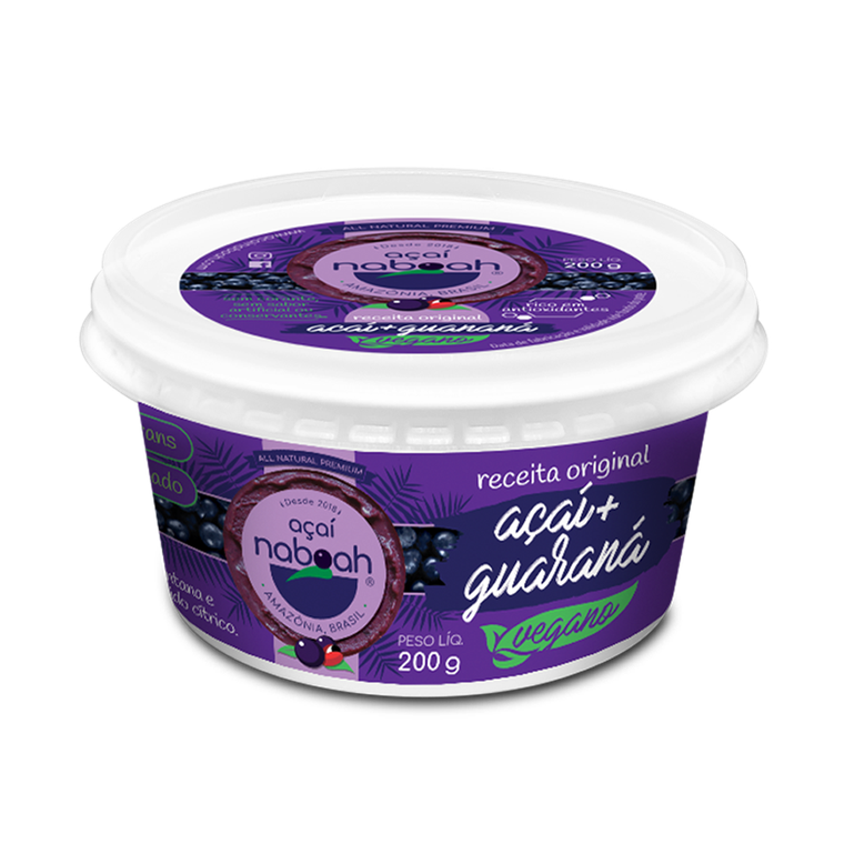 Açaí 100% natural, feito com extrato de guaraná e 66% de polpa. Não contém saborizantes, aromatizantes ou corantes.